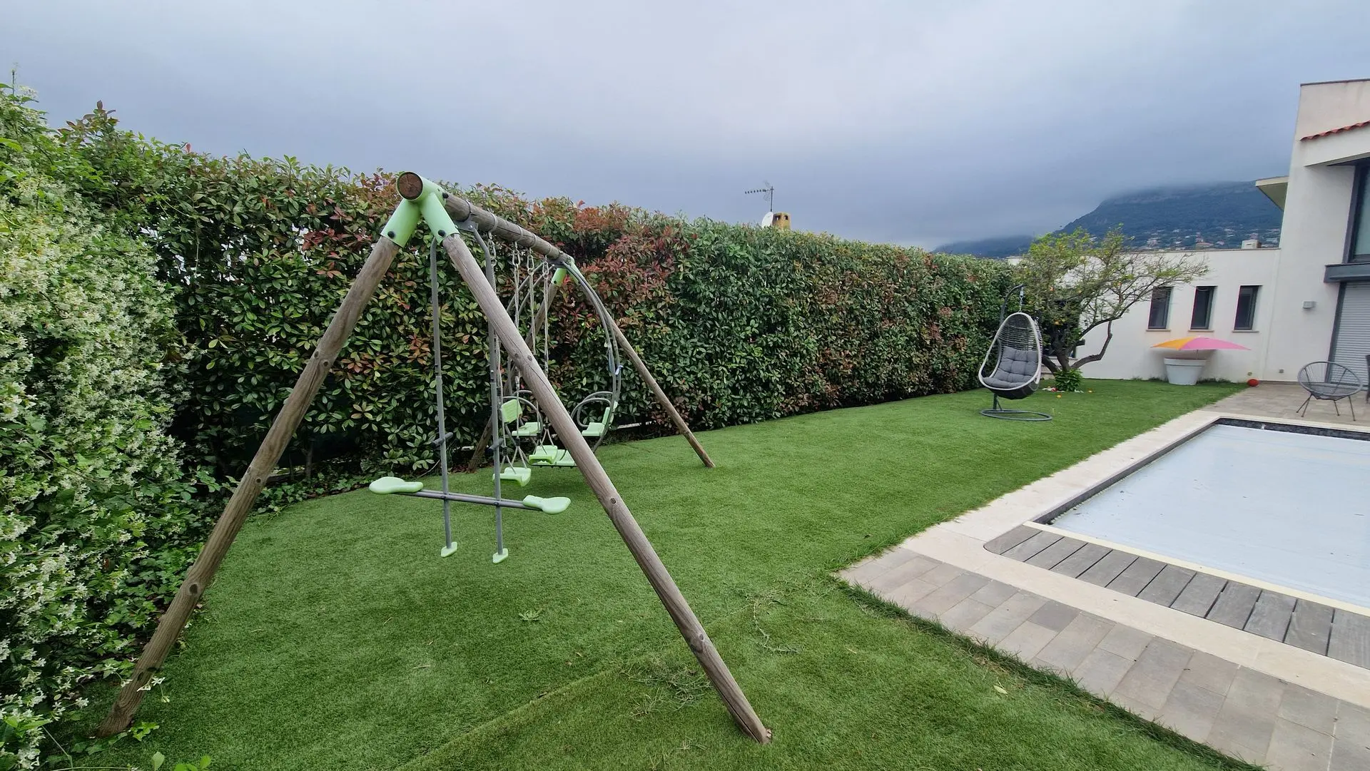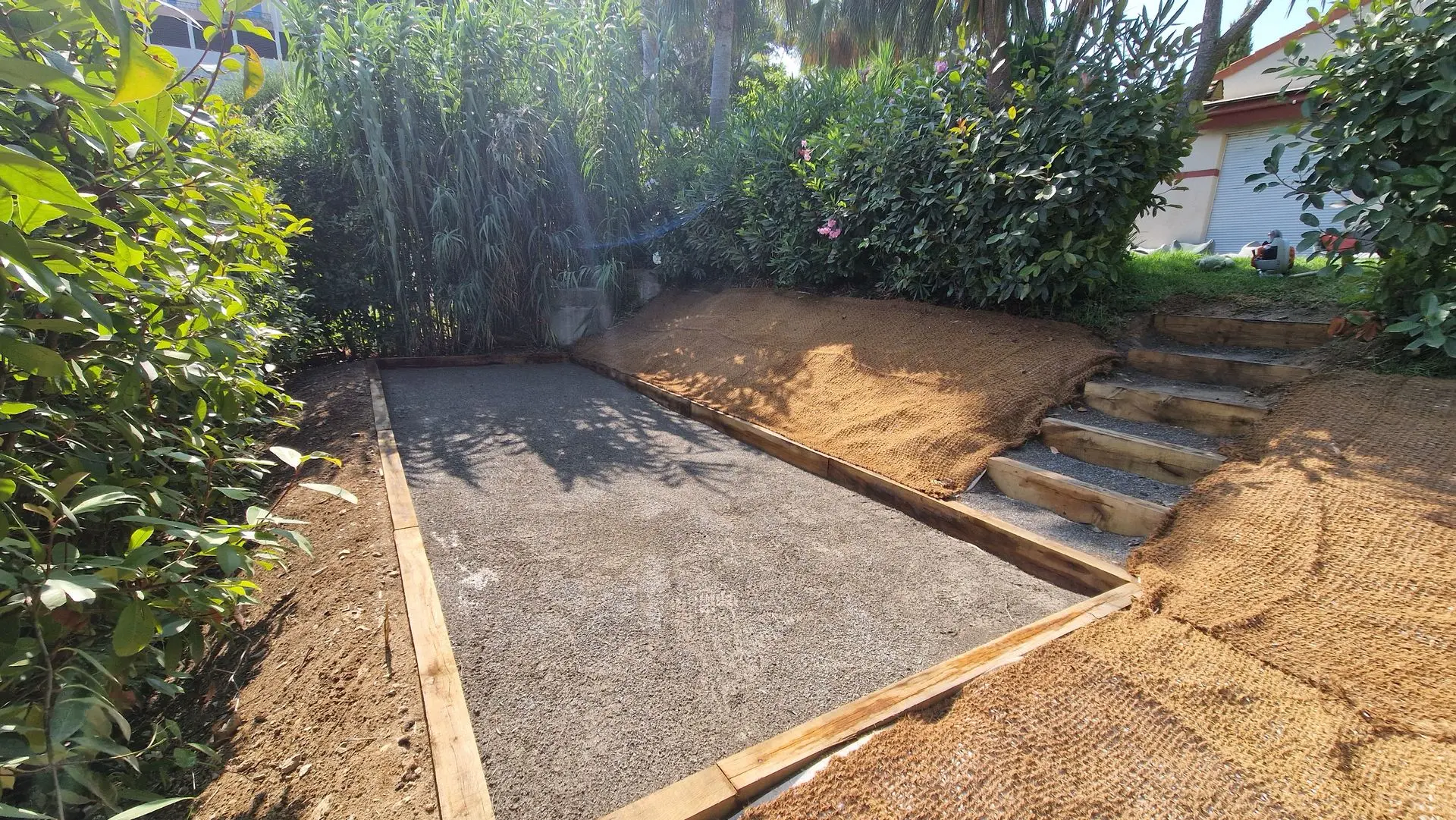 Nous pouvons réaliser tout types d'aménagements tel que des terrains de pétanque, des massifs avec des paillages minéraux ou végétaux, des bordures, des escaliers, des plantations, des gazons synthétiques...